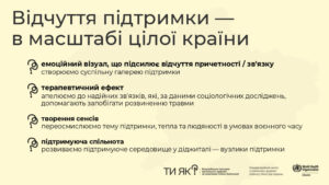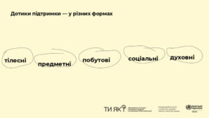 Це більше, ніж просто акція. Це колективне нагадування про те, що допомагає нам вистояти і триматися: сила щоденної людської підтримки. «Дотики підтримки» – це наші міцні людські зв’язки, які слугують нам опорою, це той ресурс тепла, що дозволяє нам втриматися і підтримати одне одного.
